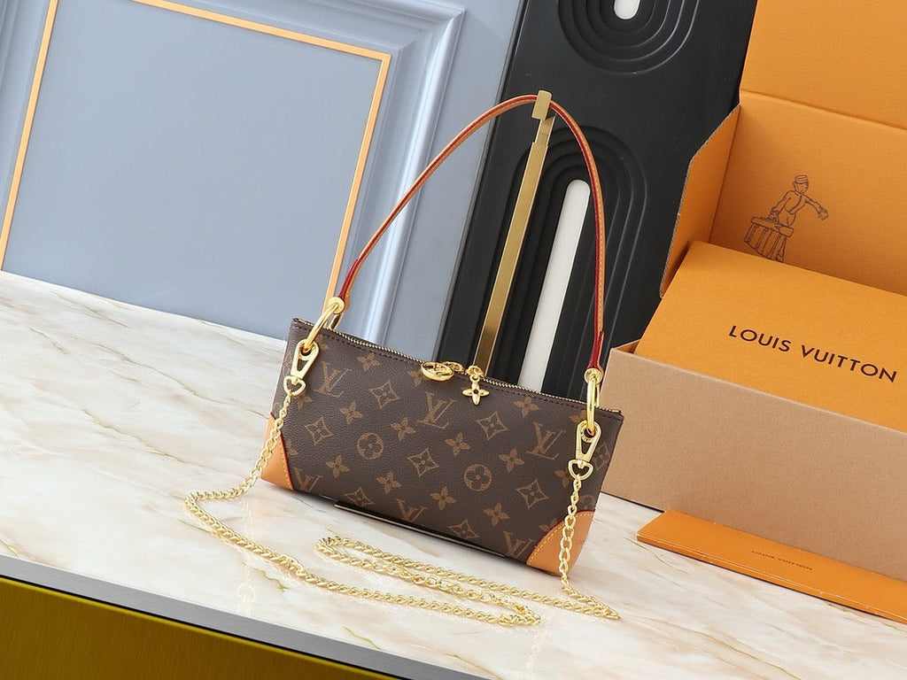 Size: 25x13x5 cm. It is a moderate size with enough internal space to hold everyday small items such as mobile phones, wallets, and lipsticks. When folded, it has an elegant shape and is suitable for occasions such as dinner parties and dates. When unfolded, it can be worn crossbody to meet daily commuting needs.
