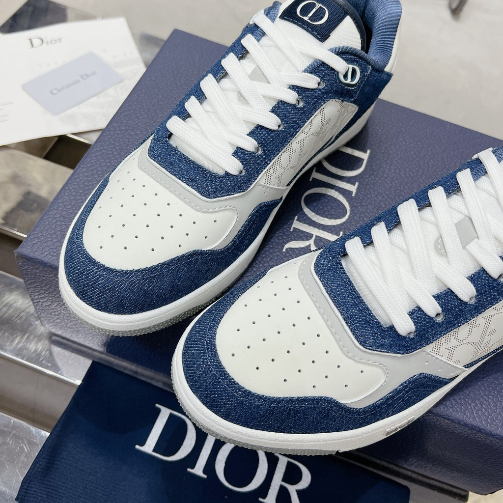 B27 Uptown Men's Low-Top Sneakers White Smooth Calfskin, Blue Denim, and White Oblique Galaxy Leather