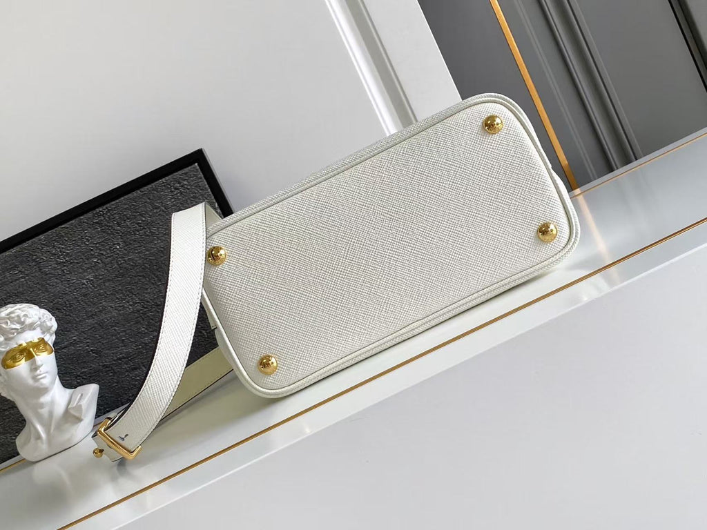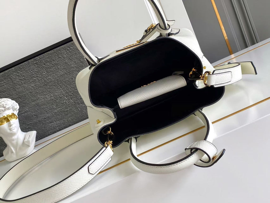 Size: 25x18.5x12.5cm,Refined, delicate details give new life to iconic designs of the brand like the Prada Double bag with a new mini design that is versatile and sophisticated. A tonal leather triangle frames the iconic metal lettering logo that decorates the front, while the detachable shoulder strap lets the bag be worn slung over the shoulder or as a crossbody bag.