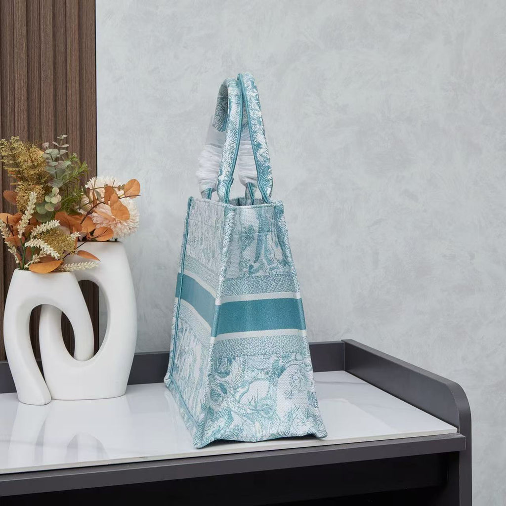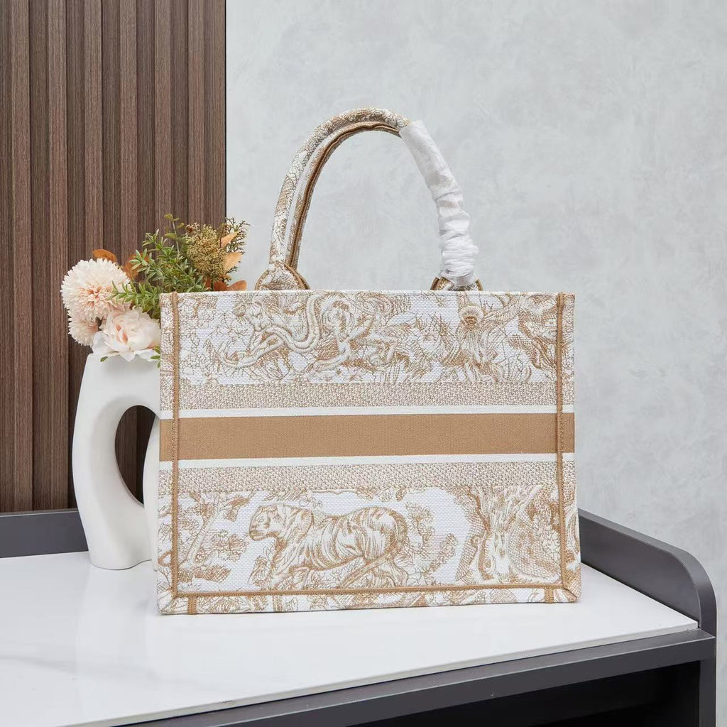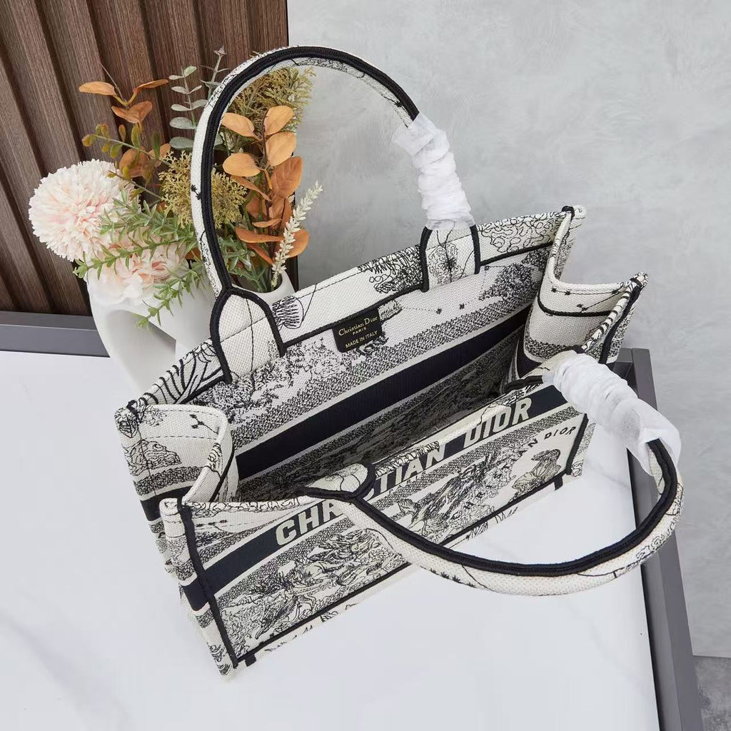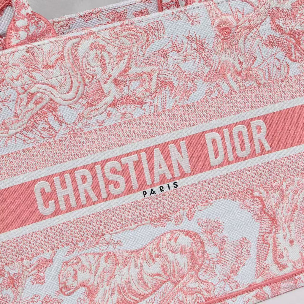 Measuring 36 x 27.5 x 16.5 cm, this Book Tote bag from the Di*r iviera limited edition collection is a timeless piece. Embellished with the all-over Sauvage Jouy print in white and yarrow pink, a new interpretation of the iconic Di*r motif, it offers ample space for everyday essentials. This medium-sized model, embellished with the Christian Di*r Paris signature on the front, showcases Di*r exceptional craftsmanship and can be carried by hand or on the shoulder.